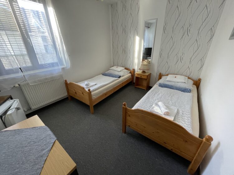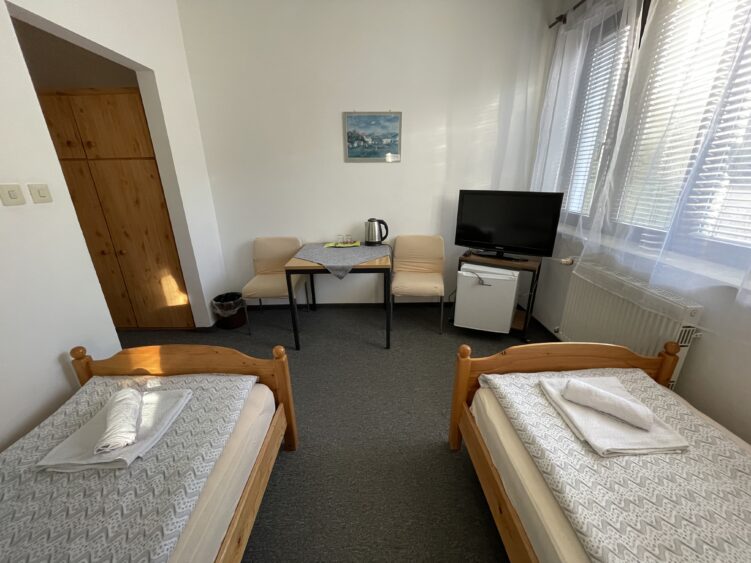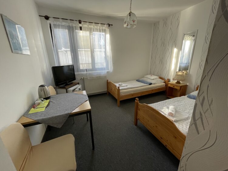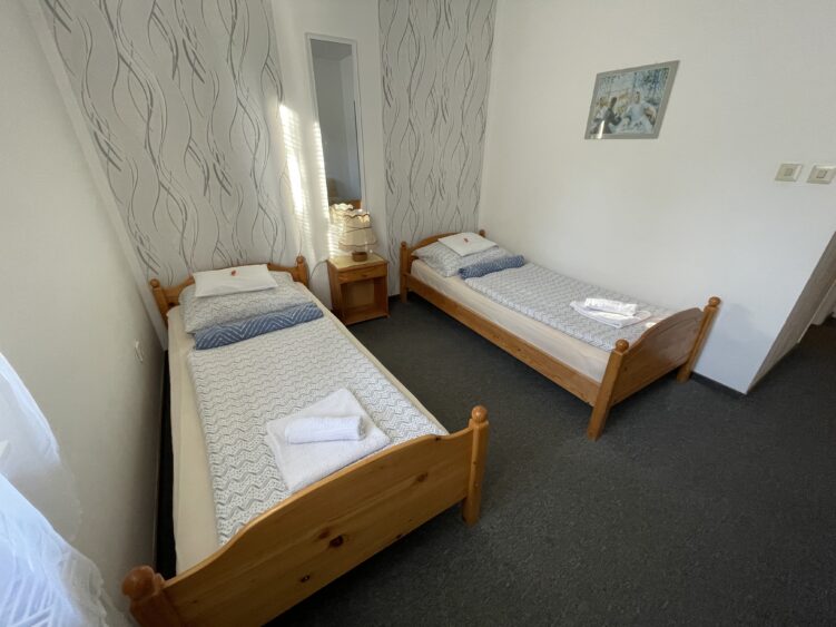 Összességében a panzió kétágyas szobája kényelmes és jól felszerelt, így a vendégek élvezhetik a nyugodt és pihentető éjszakákat. Lehetőség van a szobát egy főre is lefoglalni, természetesen kedvezőbb áron!